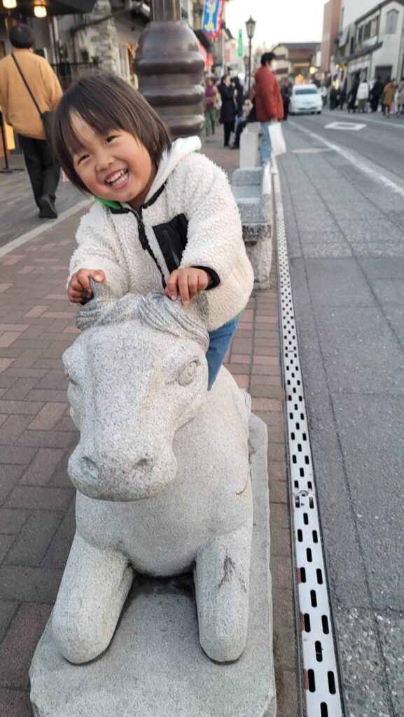 途中、出店まわりに馬の石を発見