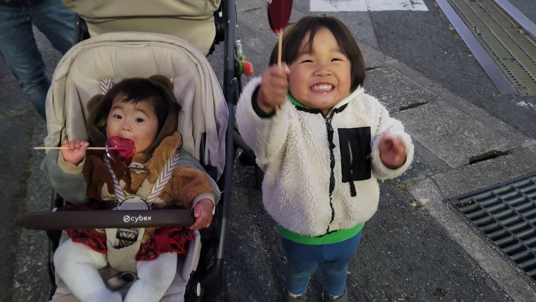 出店でリンゴ飴を買ってご満悦